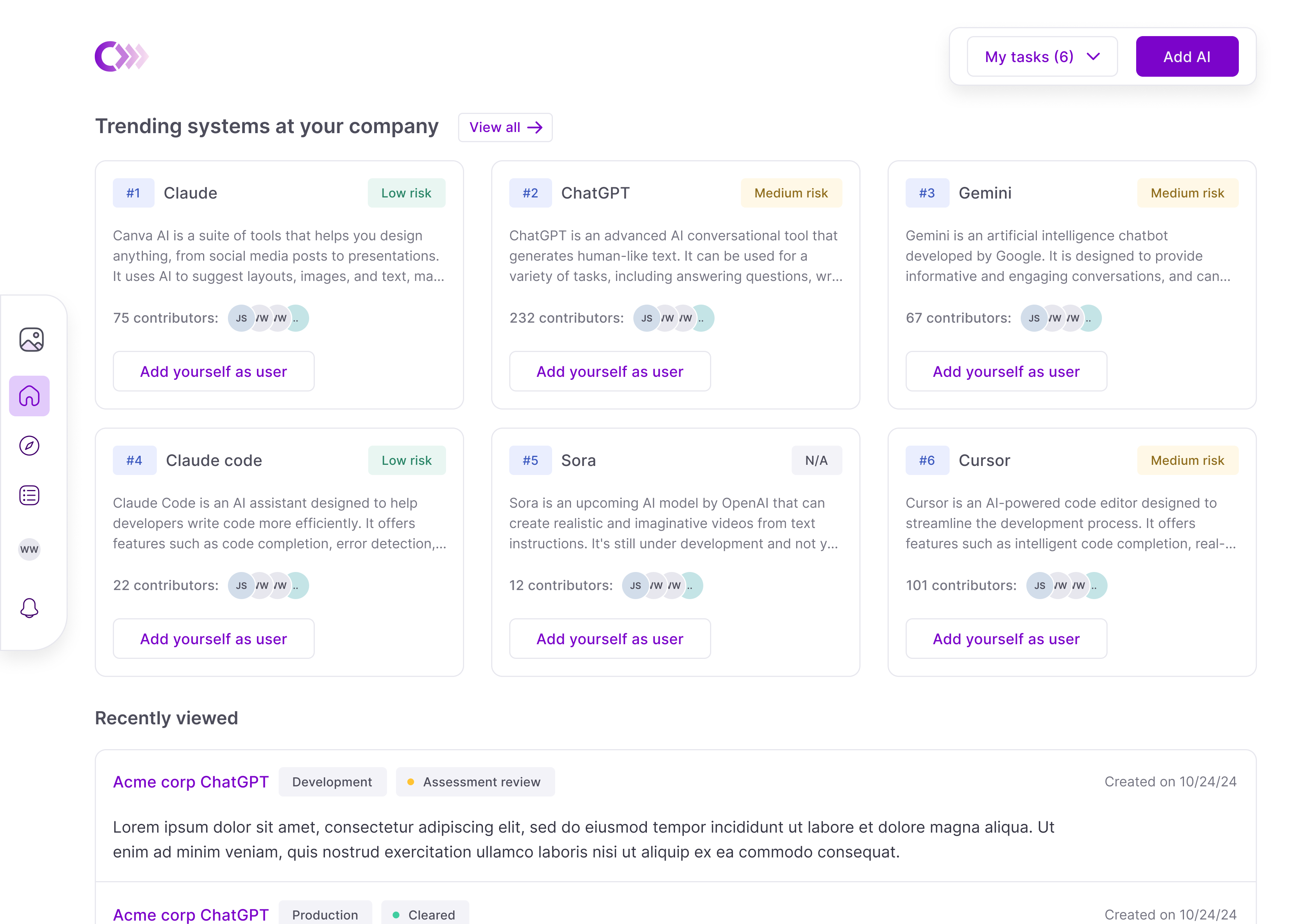 As AI adoption scaled, teams registered the same tools repeatedly under slightly different use cases. Each instance required separate review, ownership, and maintenance—fragmenting context and multiplying governance effort without improving oversight. What looked like growth was actually duplication.