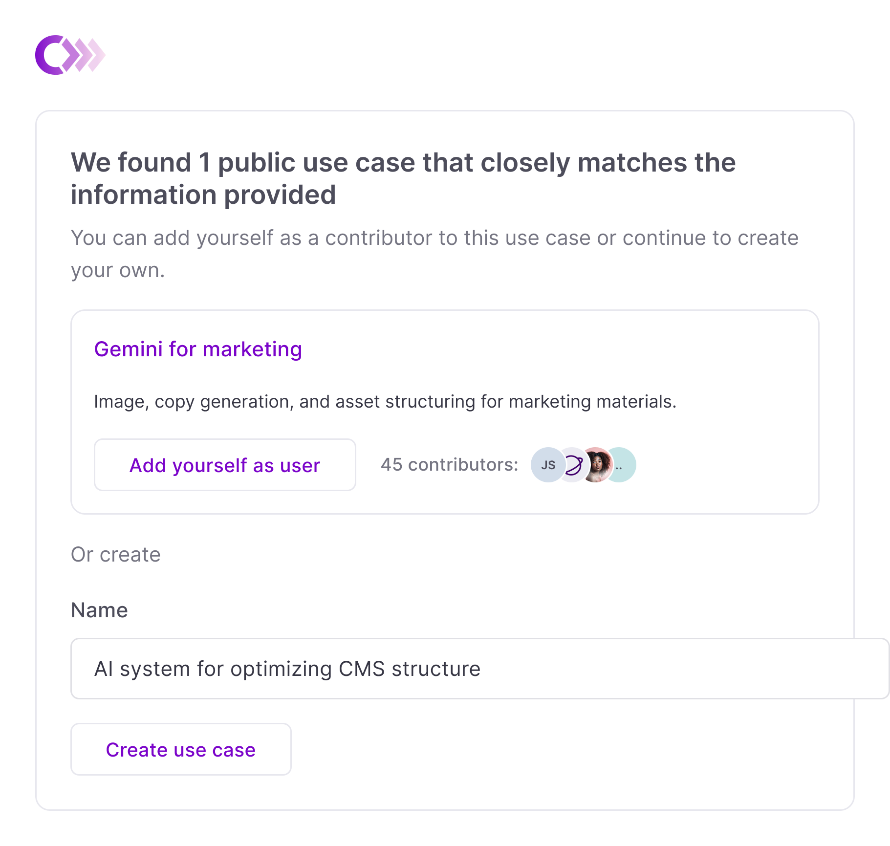 Use cases were originally designed to be only visible to owners, admins, and selected contributors. This strict one-size-fits-all approach worked in 2023 when enterprises were building their own tools, but as usage shifted to applications and APIs, a public setting was needed to prevent duplication.