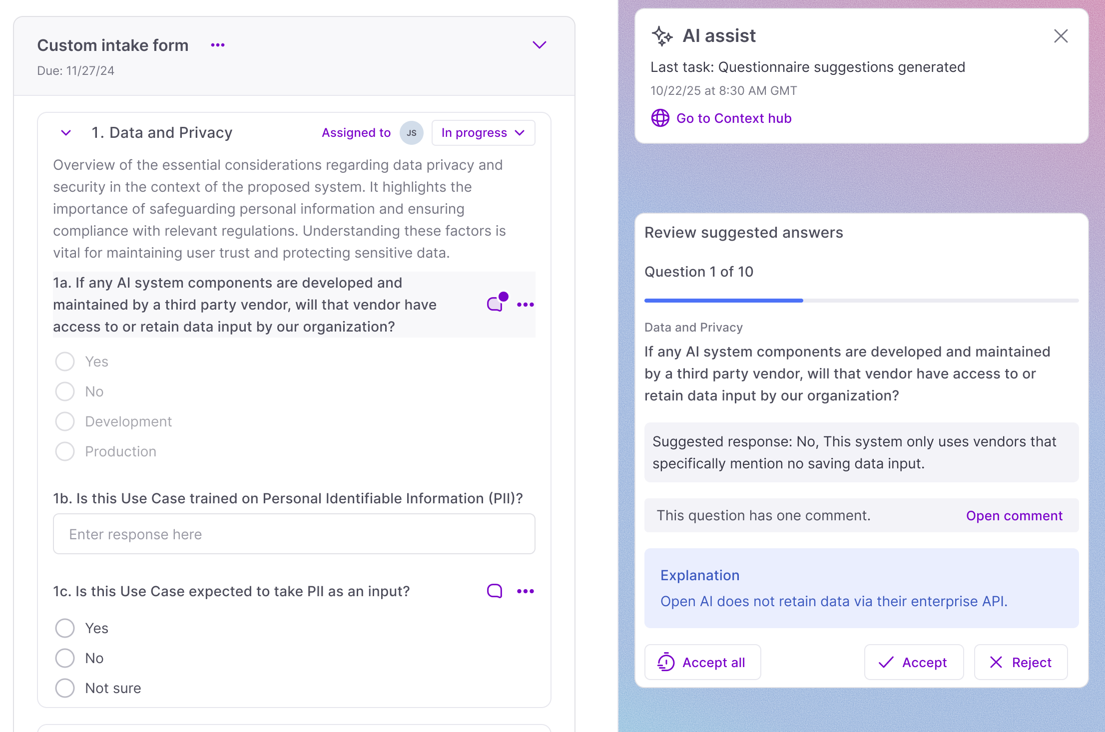 The nature of AI adoption changes fast. AI Assist alleviated the targeted pain point of registering use cases, but it is not hard to imagine a future in which use cases are no longer the central pillar of governance.